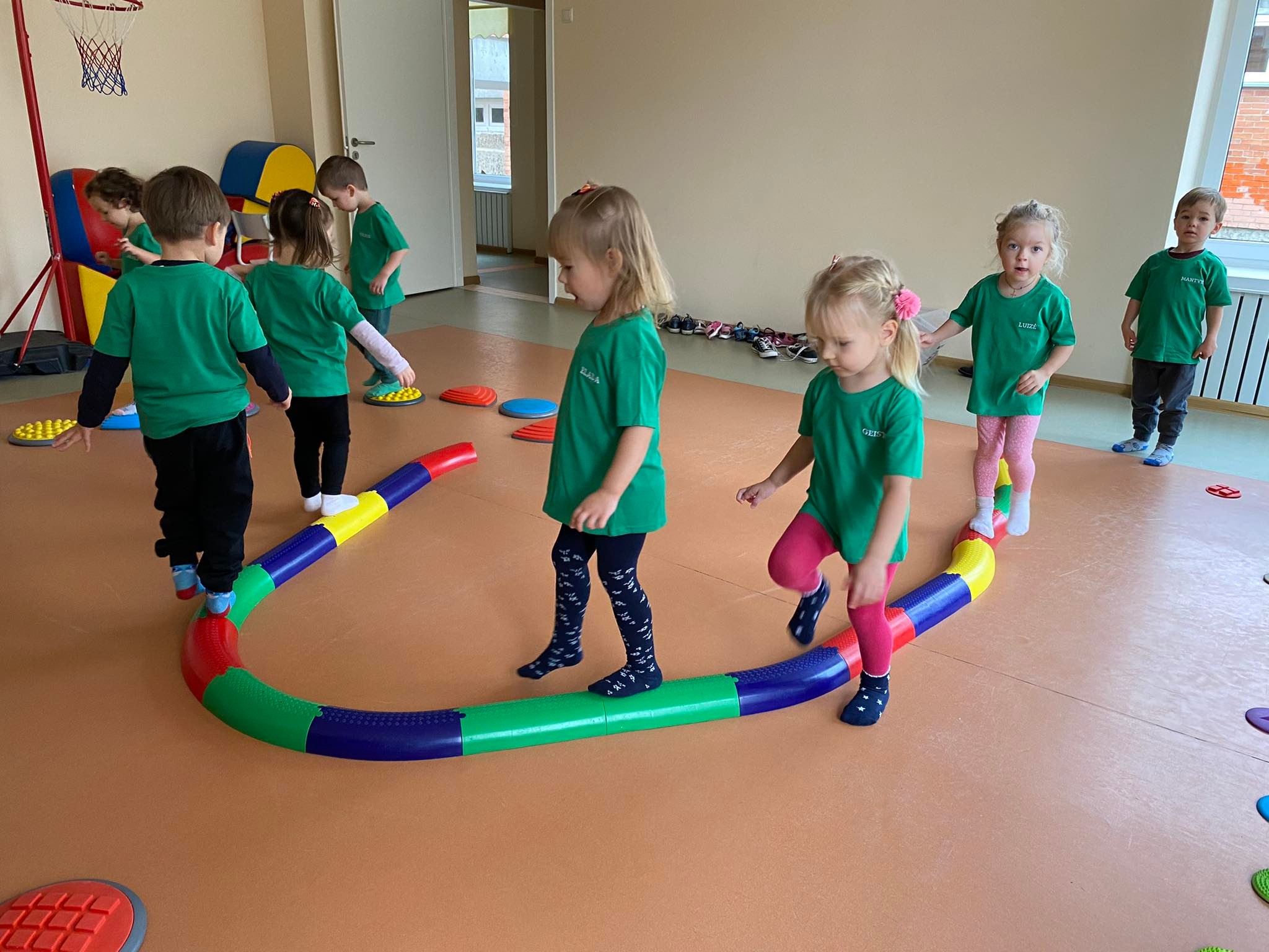 Nuo rugsėjo mėnesio ikimokyklinių „Strakaliukų“ bei „Kodėlčiukų“ ir priešmokyklinių „Gudručių“ ir „Žiniukų“ grupių vaikai mokosi anglų kalbos. Penkiamečiams užsiėmimai vyksta 1 kartą per savaitę (antradieniais), o priešmokyklinukams – du kartus per savaitę (pirmadieniais ir ketvirtadieniais). Pamokėlių metu mažieji žaidžia žaidimus, dainuoja angliškas daineles, mokosi eilėraštukų, atlieka įvairias užduotis. Šitaip vaikai mokosi suprasti ir taisyklingai vartoti pagrindinius anglų kalbos žodžius, frazes ir sakinius, lavina kalbėjimo ir klausymo įgūdžius. Užsiėmimų metu vaikai mokosi kalbos viena ar kita tema. Daug dėmesio skiriama kartojimui ir klausimams, kurių dėka vaikai skatinami mąstyti, o svarbiausia – kalbėti.