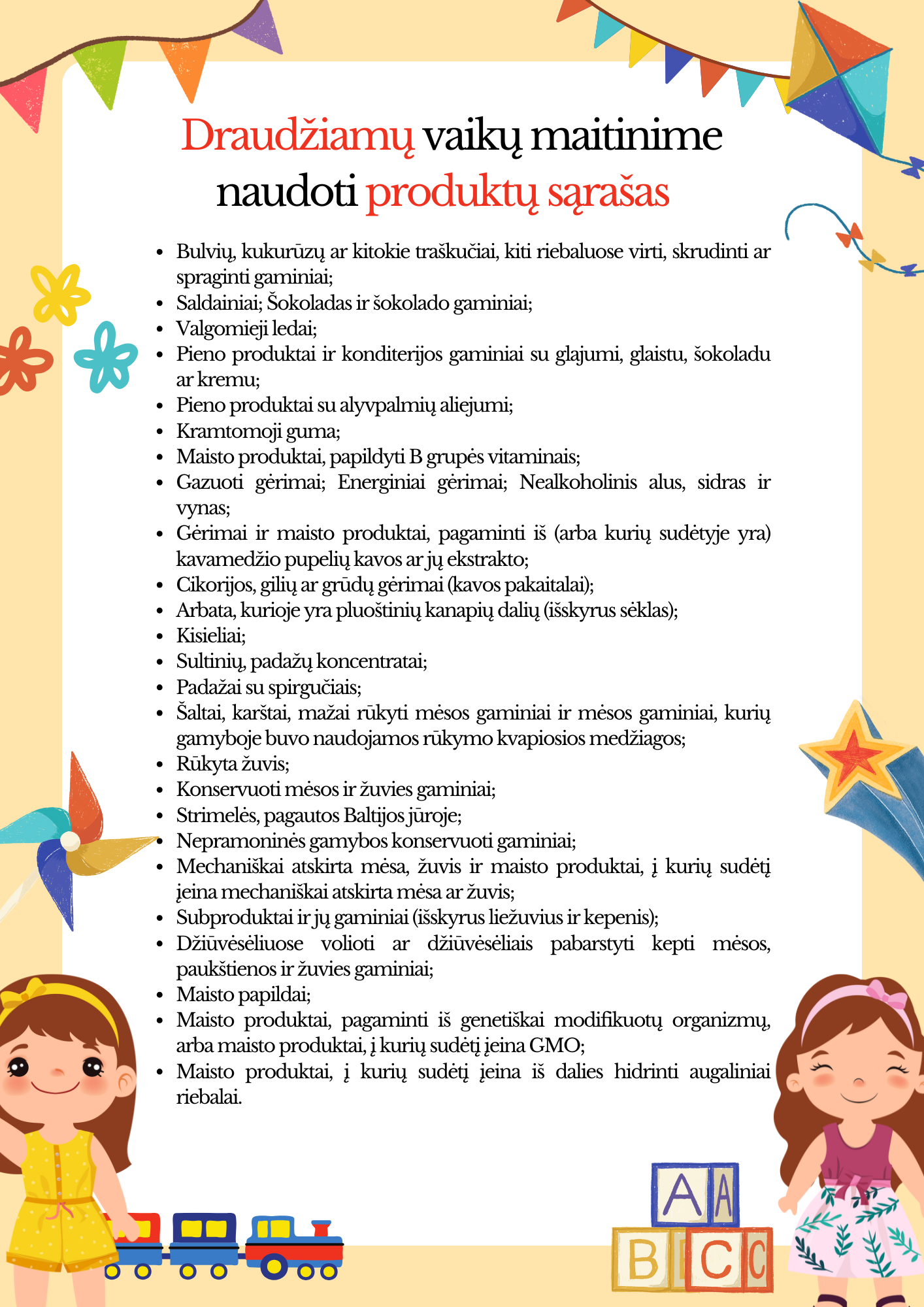 Patvirtintas 15 dienų perspektyvinis valgiaraštis 4 – 7 m. amžiaus vaikams
