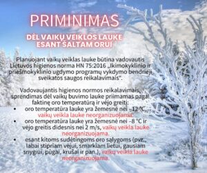 Sausio mėnesį ikimokyklinukams ir priešmokyklinio amžiaus vaikams pamokėlė apie „Sveiką maistą“. Pamokėlės metu vaikai susipažino su sveikos mitybos pagrindais, sužinojo, kokie produktai yra naudingi jų organizmui, o kuriuos reikėtų vartoti rečiau. Per žaidimus, diskusijas ir spalvingas vaizdines priemones mažieji mokėsi atpažinti vaisius, daržoves, grūdinius produktus. Vaikai noriai dalyvavo žaidime „Sveikas – nesveikas“, dalindamiesi savo žiniomis apie maisto produktus, pamėgtus patiekalus, sveiko maisto ir vandens gėrimo naudą.